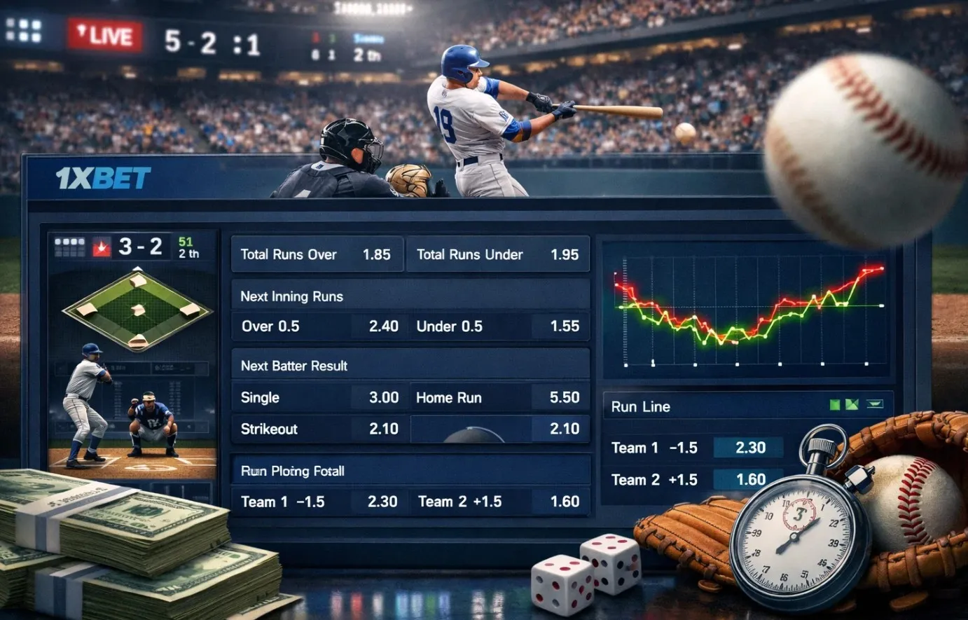 Лайв-линия бейсбола в 1xBet: структура, динамика и риски ставок